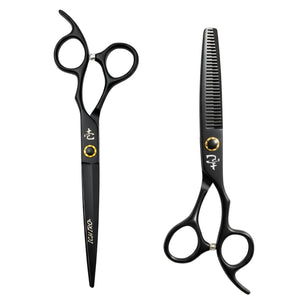 This set includes 2 pairs of Ichiro Matte Black Cutting Scissors and a pair of 6" Thinning Scissors.