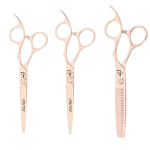 This includes 2 pairs of Ichiro Rose Gold Cutting Scissors and a pair of Thinning Scissors