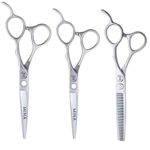 This set includes 2 pairs of Mina Jay Cutting Scissors and a pair of Thinning Scissors.
