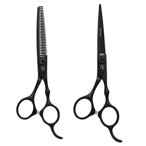 This includes a pair of Mina Timeless Hairdressing Matte Black Cutting Scissors and a pair of Thinning Scissors.