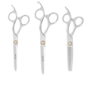 This set includes 2 pairs of Ichiro Offset Cutting Scissors and a pair of Thinning Scissors.