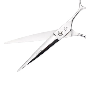 "The Ichiro Sword Barber Scissors are a game-changer in precision cutting and slide cutting techniques. Their sharp-angled convex edge blade excels in blunt cutting and dry cutting methods. This versatile tool adapts seamlessly to various barbering styles, making it indispensable for professionals demanding both high performance and lasting durability in their cutting arsenal."