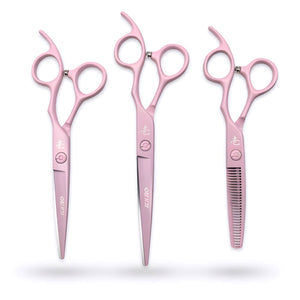 This set includes 2 pairs of Ichiro Pastel PinK Cutting Scissors and a pair of Thinning Scissors.