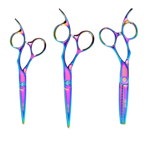 This set includes 2 pairs of Ichiro Rainbow Cutting Scissors and a pair of Thinning Scissors.