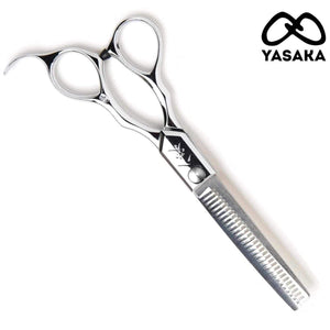 "The Yasaka Hairdressing Scissors 3PC Master Set demonstrates exceptional prowess in precision cutting and layering, courtesy of its diverse sizes and expertly crafted clam shaped convex edges. The YS series thinning scissors offer a spectrum of texturizing options, ranging from subtle refinement to dramatic thinning. This versatile set adapts seamlessly to various cutting techniques and hair textures.